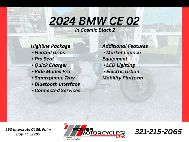 Contact us today to learn more about the 2024 BMW CE 02 or schedule a visit to see it in person.
