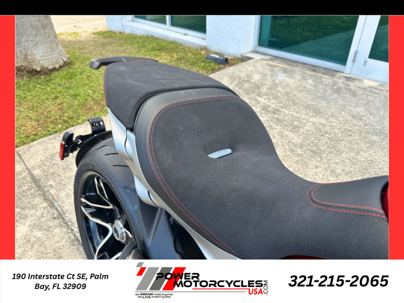• Increased rider and passenger comfort: XDiavel V4 ensures a relaxed and comfortable riding position. 30.3 inches from the ground, the spoon-shaped seat typical of a cruiser is made more comfortable with an extra 2.1 inches of foam with respect to the XDiavel 1260. Passenger comfort is boosted with a seat that is 30% wider, 50% roomier lengthways, and with foam that is 0.9 in thicker at the sides. The rear hand grip, provided with the bike, can be easily mounted on the tail section for a more secure handhold.